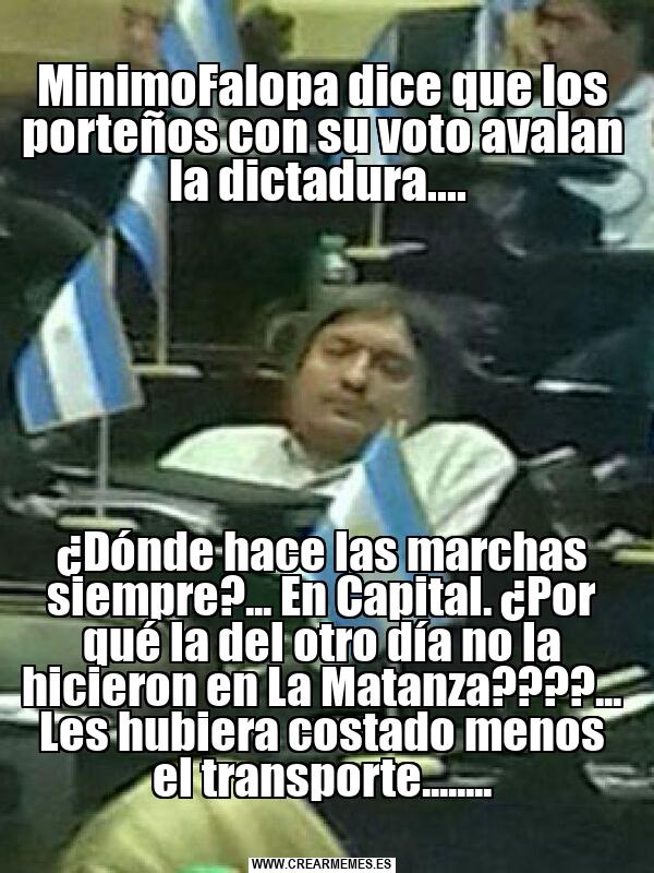 MinimoFalopa dice que los porteños con su voto avalan la dictadura.... ¿Dónde hace las marchas siempre?... En Capital. ¿Por qué la del otro día no la hicieron en La Matanza????... Les hubiera costado menos el transporte........