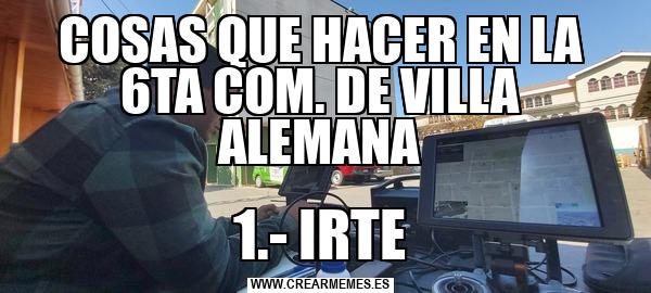 COSAS QUE HACER EN LA 6TA COM. DE VILLA ALEMANA 1.- IRTE
