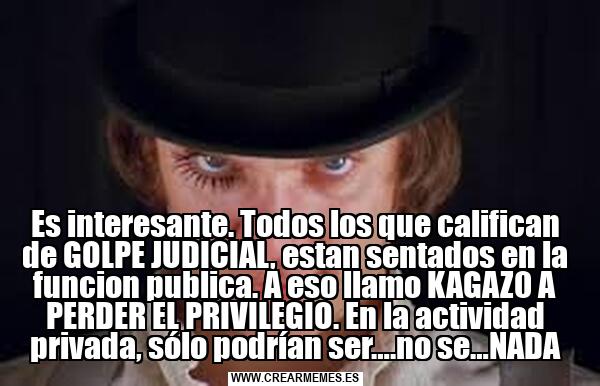 Es interesante. Todos los que califican de GOLPE JUDICIAL, estan sentados en la funcion publica. A eso llamo KAGAZ0 A PERDER EL PRIVILEGIO. En la actividad privada, sólo podrían ser….no se…NADA