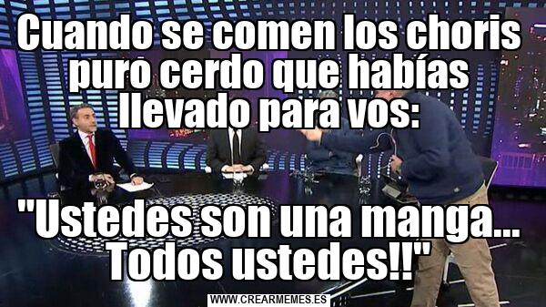 Cuando se comen los choris puro cerdo que habías llevado para vos: "Ustedes son una manga... Todos ustedes!!"