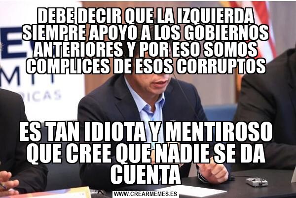 DEBE DECIR QUE LA IZQUIERDA SIEMPRE APOYO A LOS GOBIERNOS ANTERIORES Y POR ESO SOMOS COMPLICES DE ESOS CORRUPTOS ES TAN IDIOTA Y MENTIROSO QUE CREE QUE NADIE SE DA CUENTA