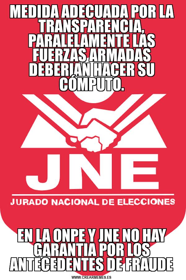 MEDIDA ADECUADA POR LA TRANSPARENCIA, PARALELAMENTE LAS FUERZAS ARMADAS DEBERIAN HACER SU CÓMPUTO. EN LA ONPE Y JNE NO HAY GARANTIA POR LOS ANTECEDENTES DE FRAUDE