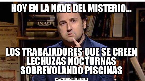 HOY EN LA NAVE DEL MISTERIO... LOS TRABAJADORES QUE SE CREEN LECHUZAS NOCTURNAS SOBREVOLANDO PISCINAS