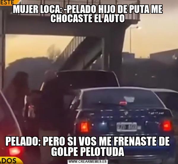 MUJER LOCA: -PELADO HIJO DE PUTA ME CHOCASTE EL AUTO PELADO: PERO SI VOS ME FRENASTE DE GOLPE PELOTUDA
