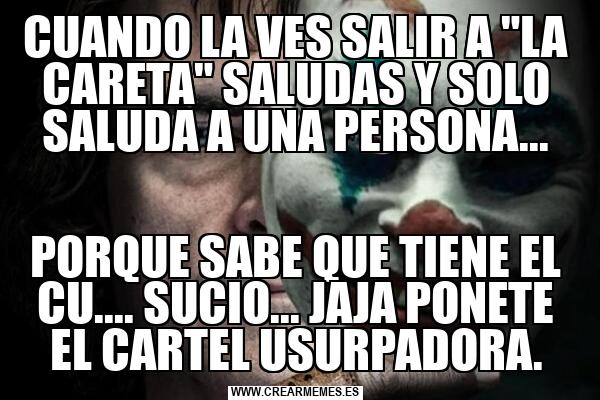 CUANDO LA VES SALIR A "LA CARETA" SALUDAS Y SOLO SALUDA A UNA PERSONA... PORQUE SABE QUE TIENE EL CU.... SUCIO... JAJA PONETE EL CARTEL USURPADORA.