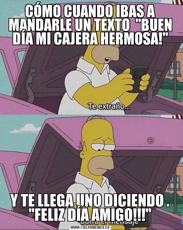 CÓMO CUANDO IBAS A MANDARLE UN TEXTO "BUEN DÍA MI CAJERA HERMOSA!" Y TE LLEGA UNO DICIENDO . "FELIZ DÍA AMIGO!!!"