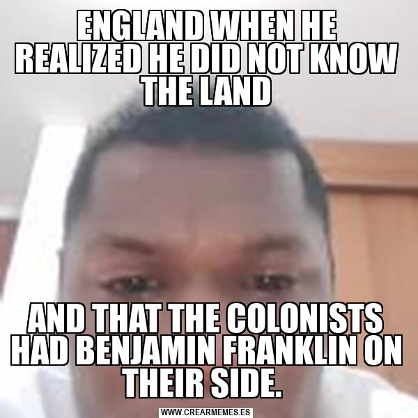 ENGLAND WHEN HE REALIZED HE DID NOT KNOW THE LAND AND THAT THE COLONISTS HAD BENJAMIN FRANKLIN ON THEIR SIDE.
