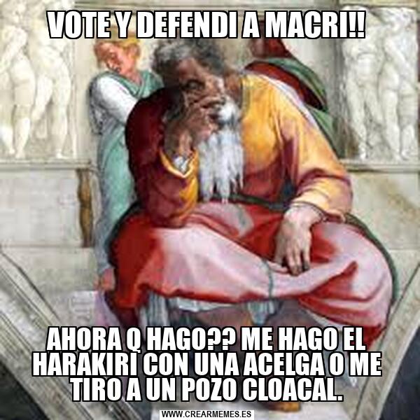 VOTE Y DEFENDI A MACRI!! AHORA Q HAGO?? ME HAGO EL HARAKIRI CON UNA ACELGA O ME TIRO A UN POZO CLOACAL.