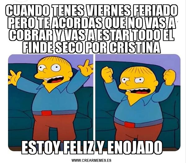 CUANDO TENES VIERNES FERIADO PERO TE ACORDAS QUE NO VAS A COBRAR Y VAS A ESTAR TODO EL FINDE SECO POR CRISTINA ESTOY FELIZ Y ENOJADO