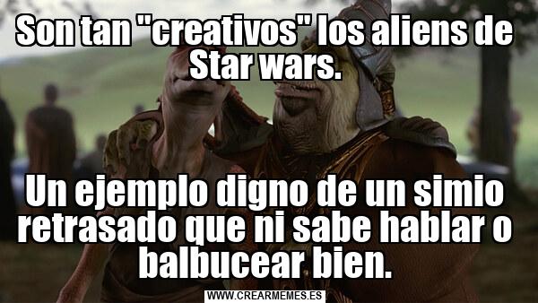 Son tan "creativos" los aliens de Star wars. Un ejemplo digno de un simio retrasado que ni sabe hablar o balbucear bien.