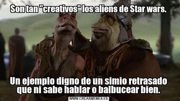 Son tan "creativos" los aliens de Star wars. Un ejemplo digno de un simio retrasado que ni sabe hablar o balbucear bien.