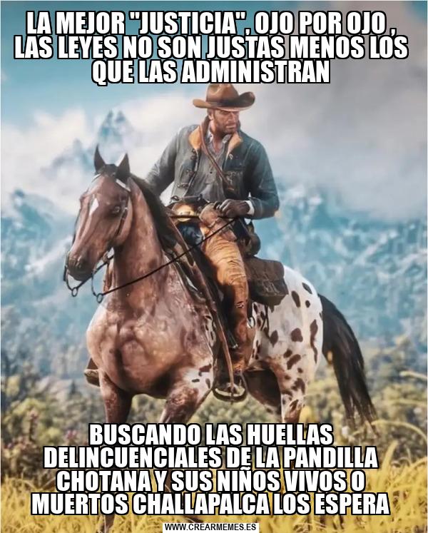 LA MEJOR "JUSTICIA", OJO POR OJO , LAS LEYES NO SON JUSTAS MENOS LOS QUE LAS ADMINISTRAN BUSCANDO LAS HUELLAS DELINCUENCIALES DE LA PANDILLA CHOTANA Y SUS NIÑOS VIVOS O MUERTOS CHALLAPALCA LOS ESPERA
