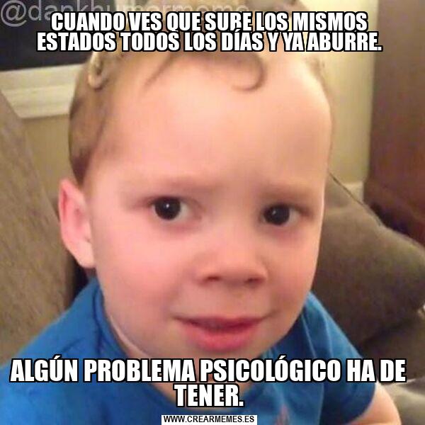 CUANDO VES QUE SUBE LOS MISMOS ESTADOS TODOS LOS DÍAS Y YA ABURRE. ALGÚN PROBLEMA PSICOLÓGICO HA DE TENER.