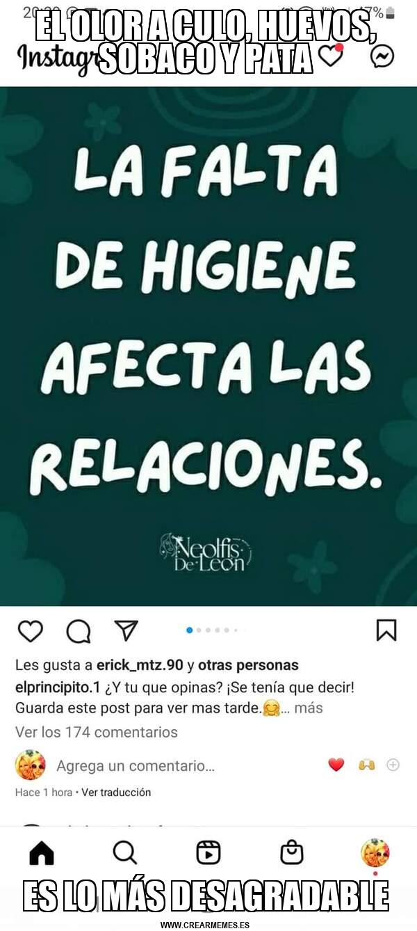 EL OLOR A CULO, HUEVOS, SOBACO Y PATA ES LO MÁS DESAGRADABLE
