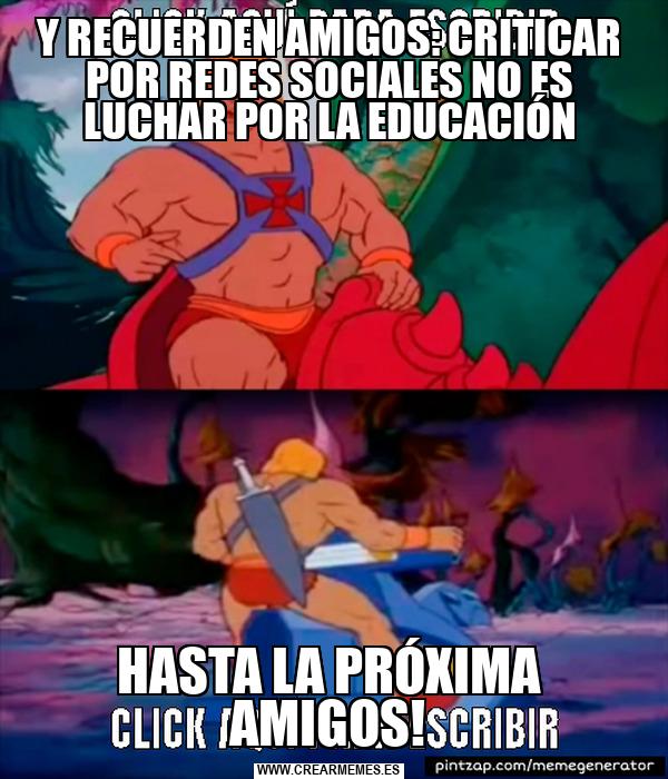 Y RECUERDEN AMIGOS: CRITICAR POR REDES SOCIALES NO ES LUCHAR POR LA EDUCACIÓN HASTA LA PRÓXIMA AMIGOS!