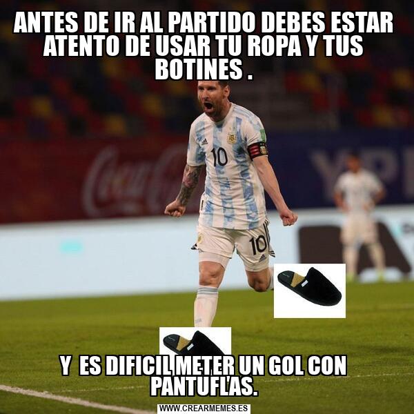 ANTES DE IR AL PARTIDO DEBES ESTAR ATENTO DE USAR TU ROPA Y TUS BOTINES . Y ES DIFICIL METER UN GOL CON PANTUFLAS.