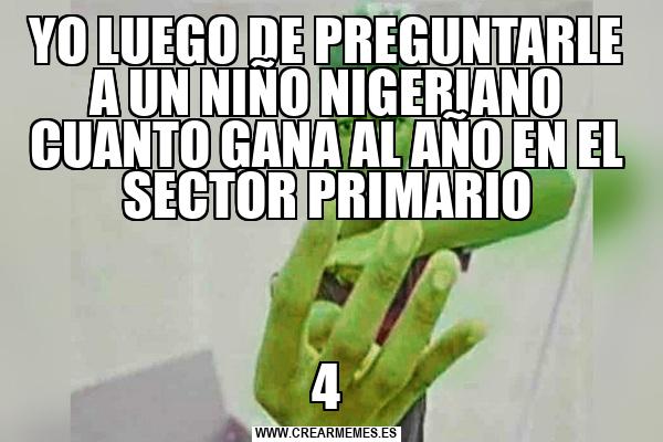 YO LUEGO DE PREGUNTARLE A UN NIÑO NIGERIANO CUANTO GANA AL AÑO EN EL SECTOR PRIMARIO 4