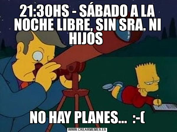21:30HS - SÁBADO A LA NOCHE LIBRE, SIN SRA. NI HIJOS NO HAY PLANES... :-(