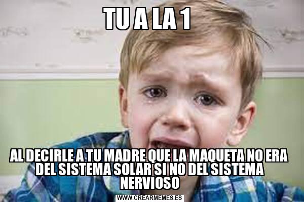 TU A LA 1 AL DECIRLE A TU MADRE QUE LA MAQUETA NO ERA DEL SISTEMA SOLAR SI NO DEL SISTEMA NERVIOSO