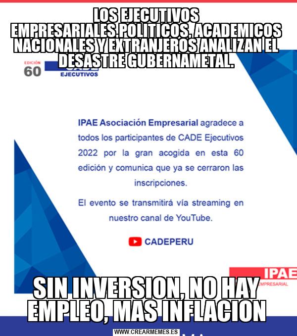 LOS EJECUTIVOS EMPRESARIALES,POLITICOS, ACADEMICOS NACIONALES Y EXTRANJEROS ANALIZAN EL DESASTRE GUBERNAMETAL. SIN INVERSION, NO HAY EMPLEO, MAS INFLACION