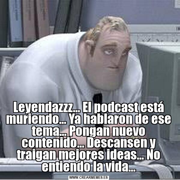 Leyendazzz... El podcast está muriendo... Ya hablaron de ese tema... Pongan nuevo contenido... Descansen y traigan mejores ideas... No entiendo la vida...