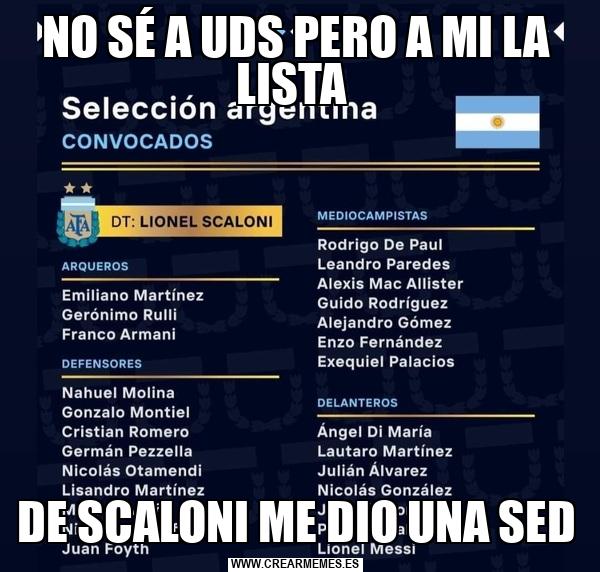 NO SÉ A UDS PERO A MI LA LISTA DE SCALONI ME DIO UNA SED