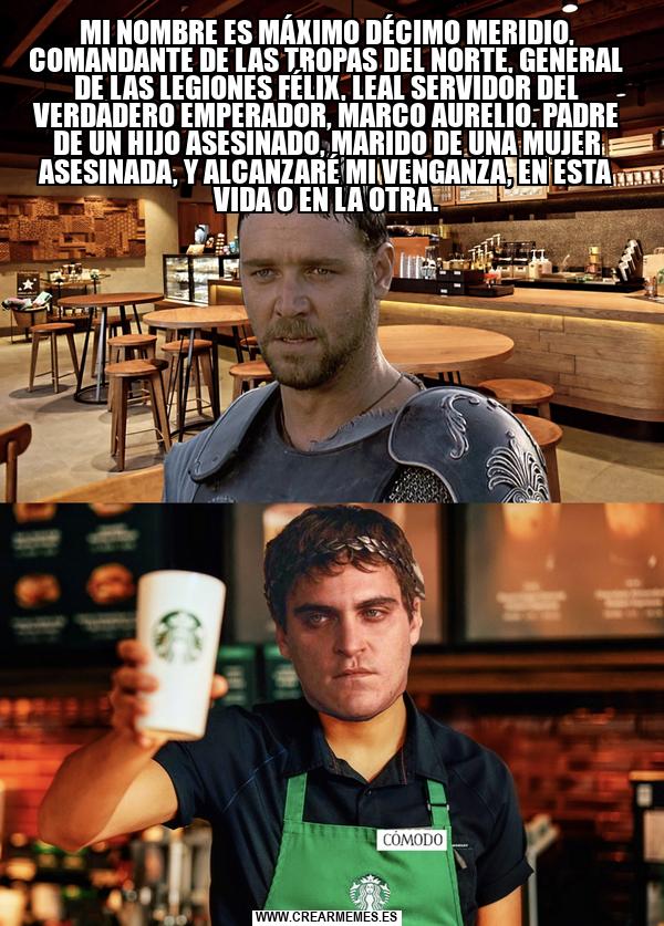 MI NOMBRE ES MÁXIMO DÉCIMO MERIDIO, COMANDANTE DE LAS TROPAS DEL NORTE, GENERAL DE LAS LEGIONES FÉLIX, LEAL SERVIDOR DEL VERDADERO EMPERADOR, MARCO AURELIO. PADRE DE UN HIJO ASESINADO, MARIDO DE UNA MUJER ASESINADA, Y ALCANZARÉ MI VENGANZA, EN ESTA V