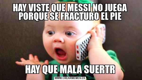 HAY VISTE QUE MESSI NO JUEGA PORQUE SE FRACTURO EL PIE HAY QUE MALA SUERTR