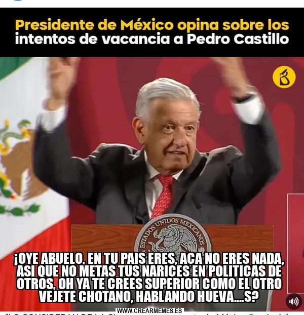 ¡OYE ABUELO, EN TU PAIS ERES, ACA NO ERES NADA, ASI QUE NO METAS TUS NARICES EN POLITICAS DE OTROS, OH YA TE CREES SUPERIOR COMO EL OTRO VEJETE CHOTANO, HABLANDO HUEVA....S?