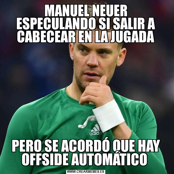 MANUEL NEUER ESPECULANDO SI SALIR A CABECEAR EN LA JUGADA PERO SE ACORDÓ QUE HAY OFFSIDE AUTOMÁTICO