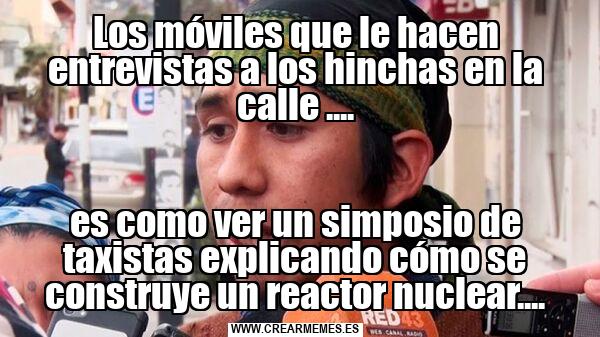 Los móviles que le hacen entrevistas a los hinchas en la calle .... es como ver un simposio de taxistas explicando cómo se construye un reactor nuclear....