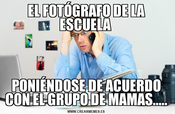 EL FOTÓGRAFO DE LA ESCUELA PONIÉNDOSE DE ACUERDO CON EL GRUPO DE MAMAS.....