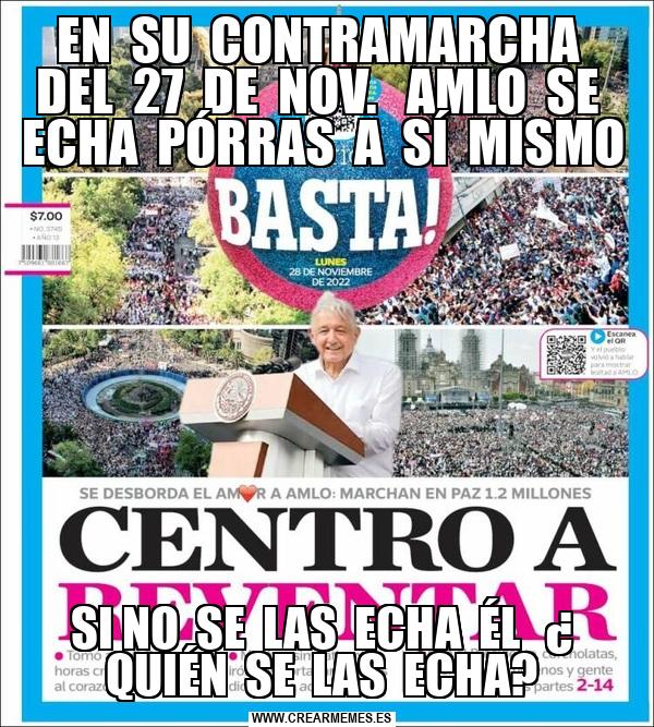 EN SU CONTRAMARCHA DEL 27 DE NOV. AMLO SE ECHA PÓRRAS A SÍ MISMO SI NO SE LAS ECHA ÉL ¿ QUIÉN SE LAS ECHA?