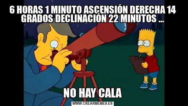 6 HORAS 1 MINUTO ASCENSIÓN DERECHA 14 GRADOS DECLINACIÓN 22 MINUTOS ... NO HAY CALA