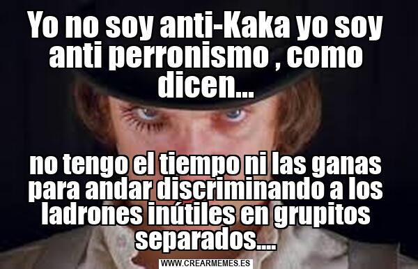 Yo no soy anti-Kaka yo soy anti perronismo , como dicen... no tengo el tiempo ni las ganas para andar discriminando a los ladrones inútiles en grupitos separados....