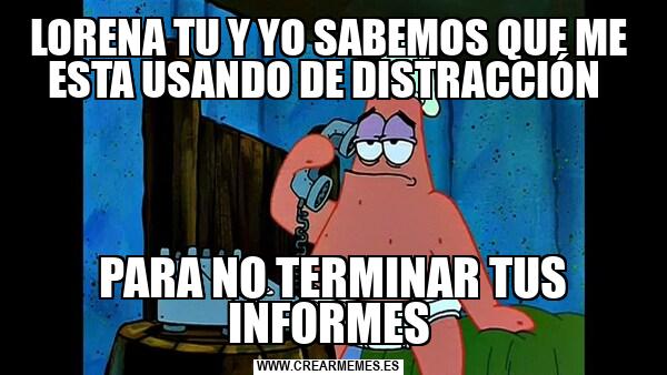 LORENA TU Y YO SABEMOS QUE ME ESTA USANDO DE DISTRACCIÓN PARA NO TERMINAR TUS INFORMES