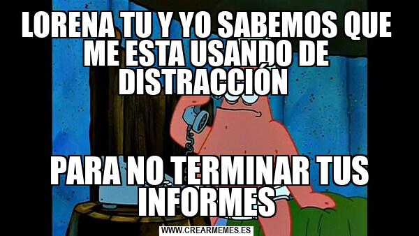 LORENA TU Y YO SABEMOS QUE ME ESTA USANDO DE DISTRACCIÓN PARA NO TERMINAR TUS INFORMES