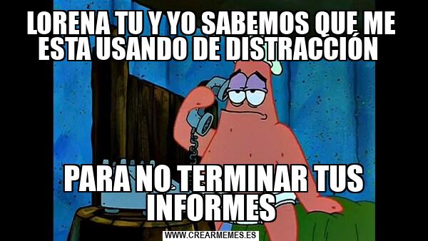 LORENA TU Y YO SABEMOS QUE ME ESTA USANDO DE DISTRACCIÓN PARA NO TERMINAR TUS INFORMES