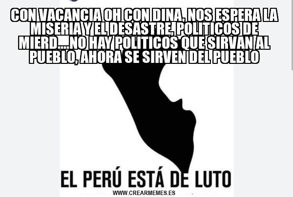 CON VACANCIA OH CON DINA, NOS ESPERA LA MISERIA Y EL DESASTRE, POLITICOS DE MIERD....NO HAY POLITICOS QUE SIRVAN AL PUEBLO, AHORA SE SIRVEN DEL PUEBLO