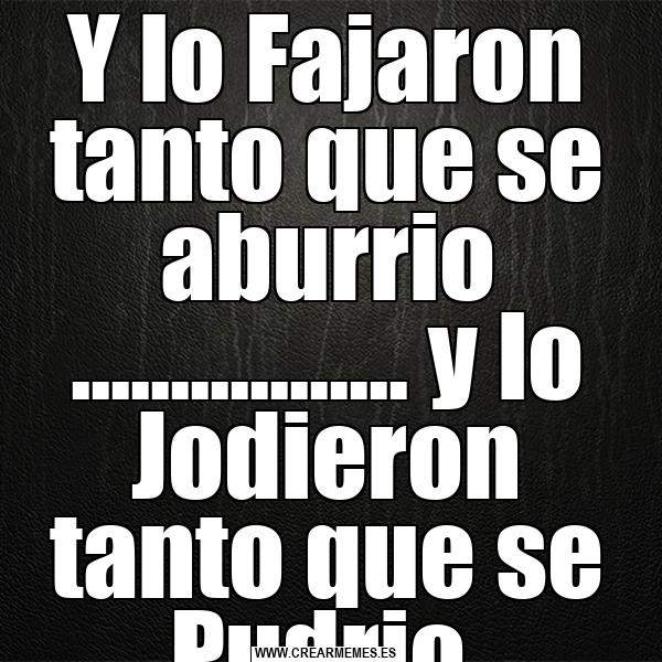 Y lo Fajaron tanto que se aburrio ................. y lo Jodieron tanto que se Pudrio