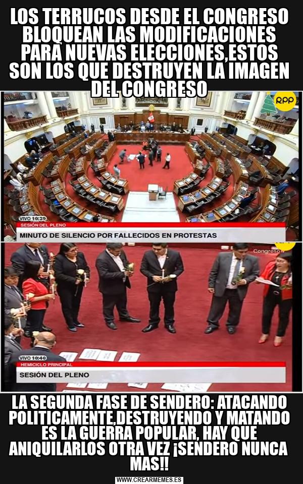 LOS TERRUCOS DESDE EL CONGRESO BLOQUEAN LAS MODIFICACIONES PARA NUEVAS ELECCIONES,ESTOS SON LOS QUE DESTRUYEN LA IMAGEN DEL CONGRESO LA SEGUNDA FASE DE SENDERO: ATACANDO POLITICAMENTE,DESTRUYENDO Y MATANDO ES LA GUERRA POPULAR, HAY QUE ANIQUILARLOS OTRA VEZ ¡SENDERO NUNCA MAS!!