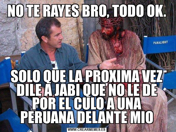 NO TE RAYES BRO, TODO OK. SOLO QUE LA PROXIMA VEZ DILE A JABI QUE NO LE DE POR EL CULO A UNA PERUANA DELANTE MIO