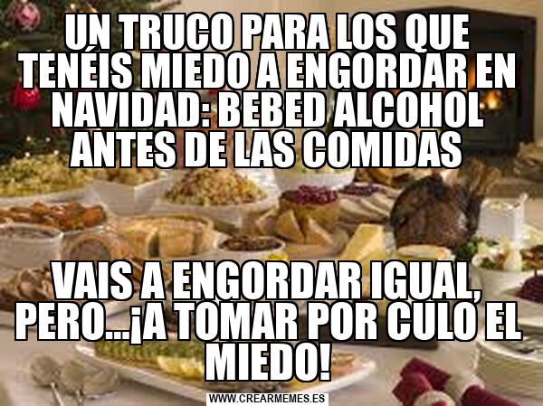 UN TRUCO PARA LOS QUE TENÉIS MIEDO A ENGORDAR EN NAVIDAD: BEBED ALCOHOL ANTES DE LAS COMIDAS VAIS A ENGORDAR IGUAL, PERO…¡A TOMAR POR CULO EL MIEDO!