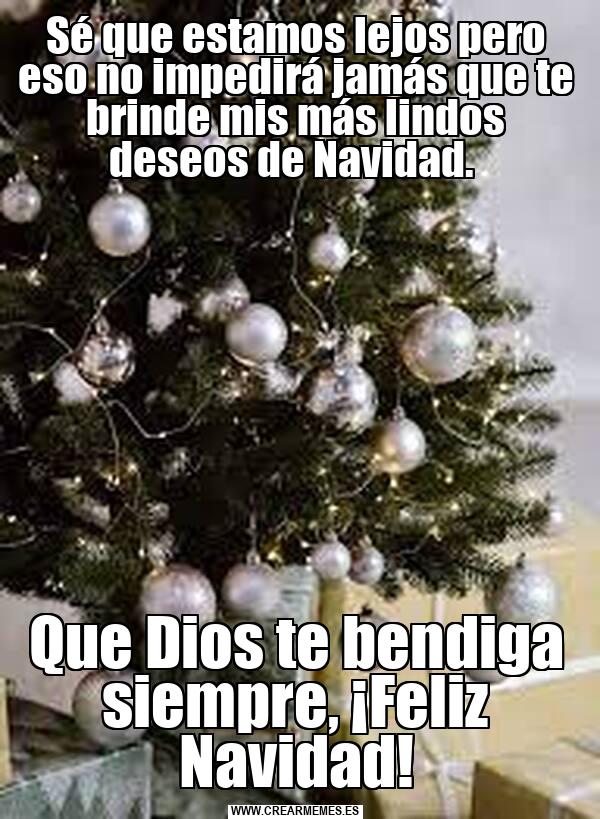 Sé que estamos lejos pero eso no impedirá jamás que te brinde mis más lindos deseos de Navidad. Que Dios te bendiga siempre, ¡Feliz Navidad!