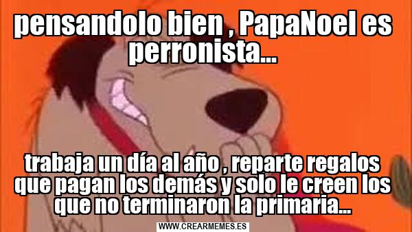 pensandolo bien , PapaNoel es perronista... trabaja un día al año , reparte regalos que pagan los demás y solo le creen los que no terminaron la primaria...