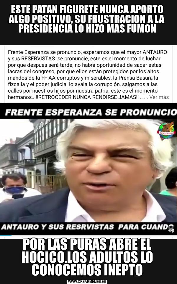 ESTE PATAN FIGURETE NUNCA APORTO ALGO POSITIVO, SU FRUSTRACION A LA PRESIDENCIA LO HIZO MAS FUMON POR LAS PURAS ABRE EL HOCICO,LOS ADULTOS LO CONOCEMOS INEPTO