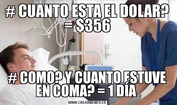 # CUANTO ESTA EL DOLAR? = $356 # COMO? Y CUANTO ESTUVE EN COMA? = 1 DÍA