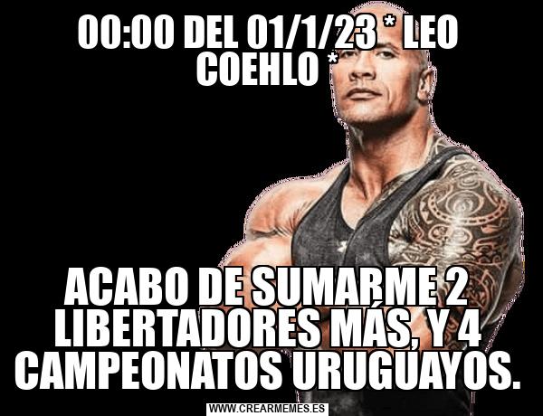 00:00 DEL 01/1/23 * LEO COEHLO * ACABO DE SUMARME 2 LIBERTADORES MÁS, Y 4 CAMPEONATOS URUGUAYOS.