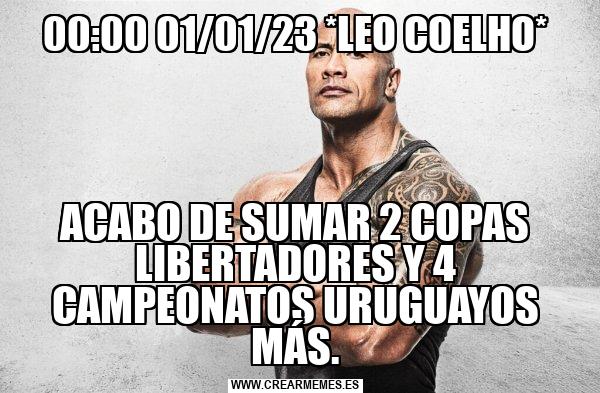 00:00 01/01/23 *LEO COELHO* ACABO DE SUMAR 2 COPAS LIBERTADORES Y 4 CAMPEONATOS URUGUAYOS MÁS.