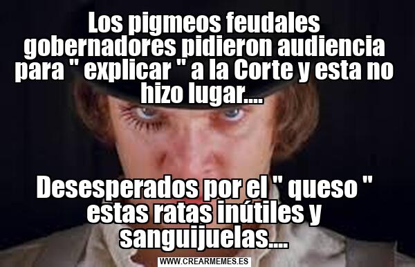 Los pigmeos feudales gobernadores pidieron audiencia para " explicar " a la Corte y esta no hizo lugar.... Desesperados por el " queso " estas ratas inútiles y sanguijuelas....